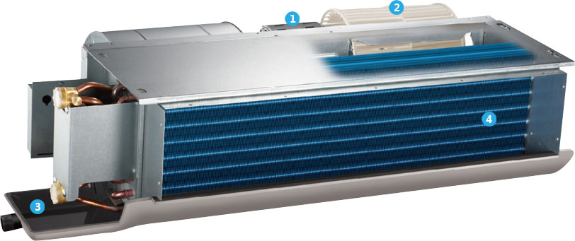 換熱效率高,翅片與銅管一起貼合,增強導(dǎo)熱性能,提高換熱效率 運行寧靜,采用低噪電機與大直徑離心風輪,穩(wěn)定寧靜運轉(zhuǎn) 機身薄,薄機身 設(shè)計,節(jié)省吊頂空間,靈活滿足個性化需求 控制靈活,可獨立控制各個房間